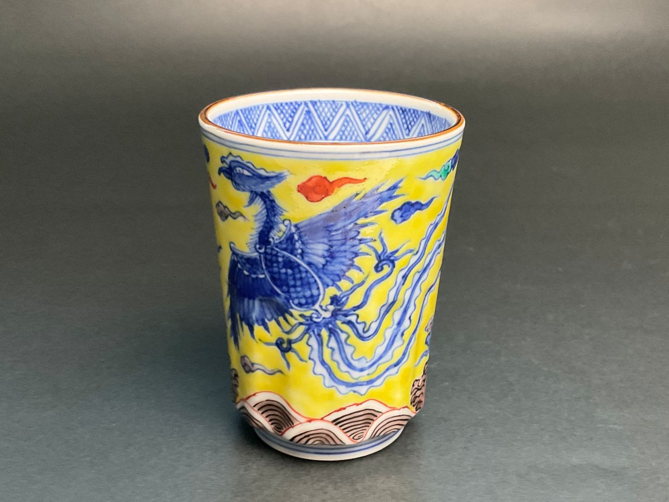 雲泉窯 黄彩雲龍鳳凰文湯呑(紫)