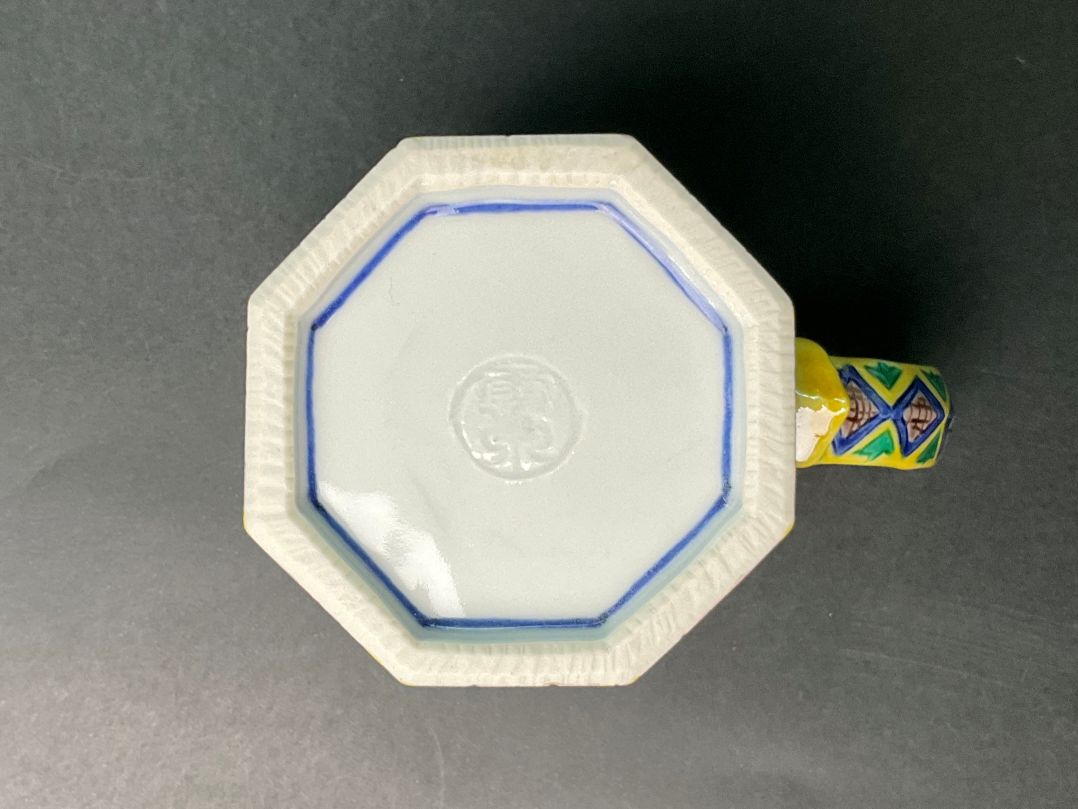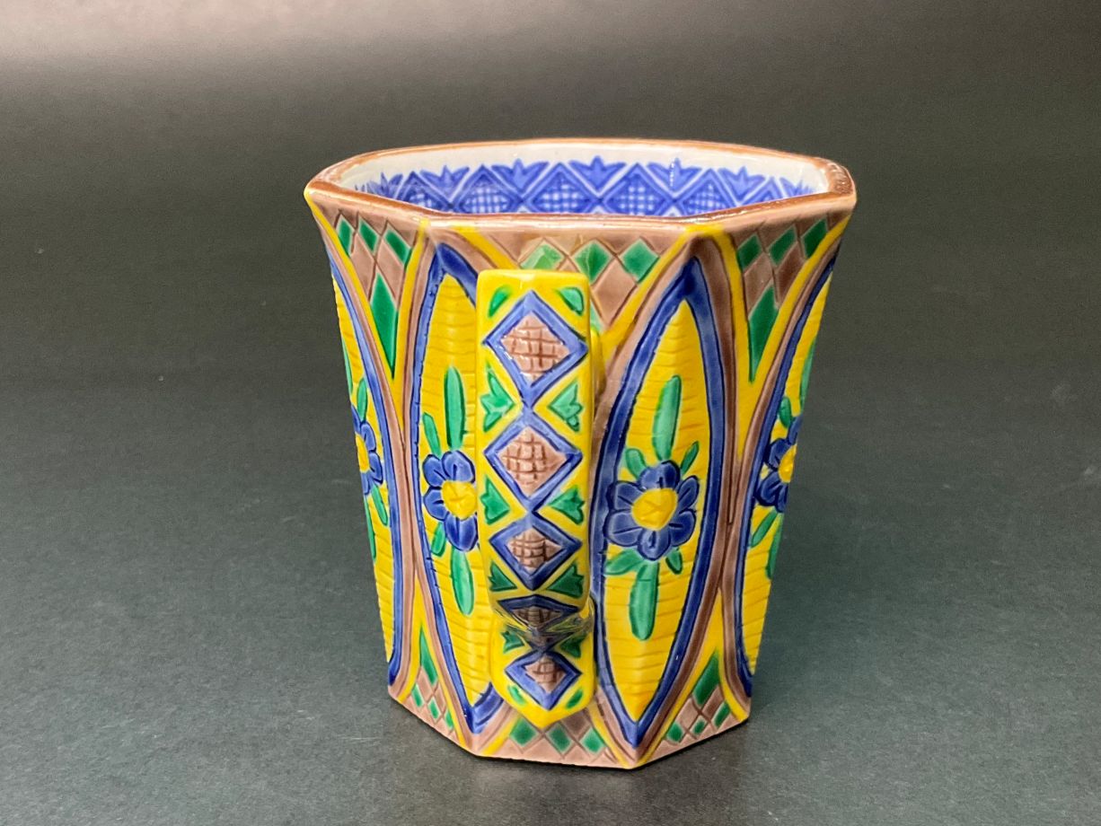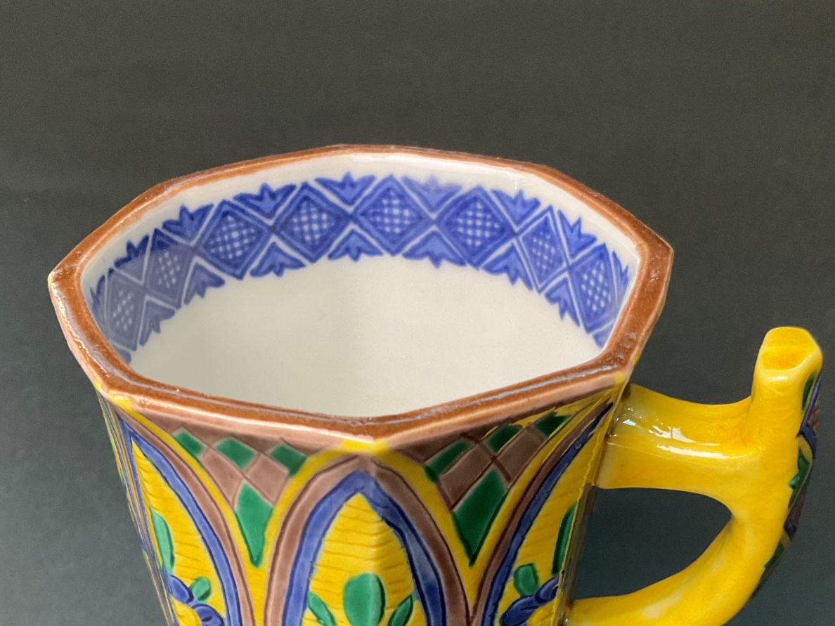 雲泉窯 黄南京窓枠草花八角マグカップ