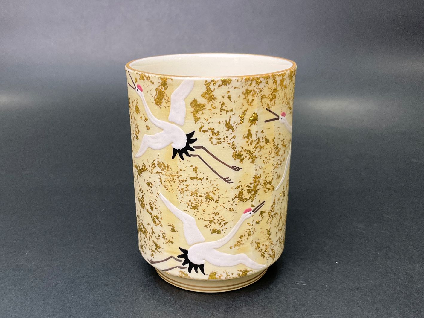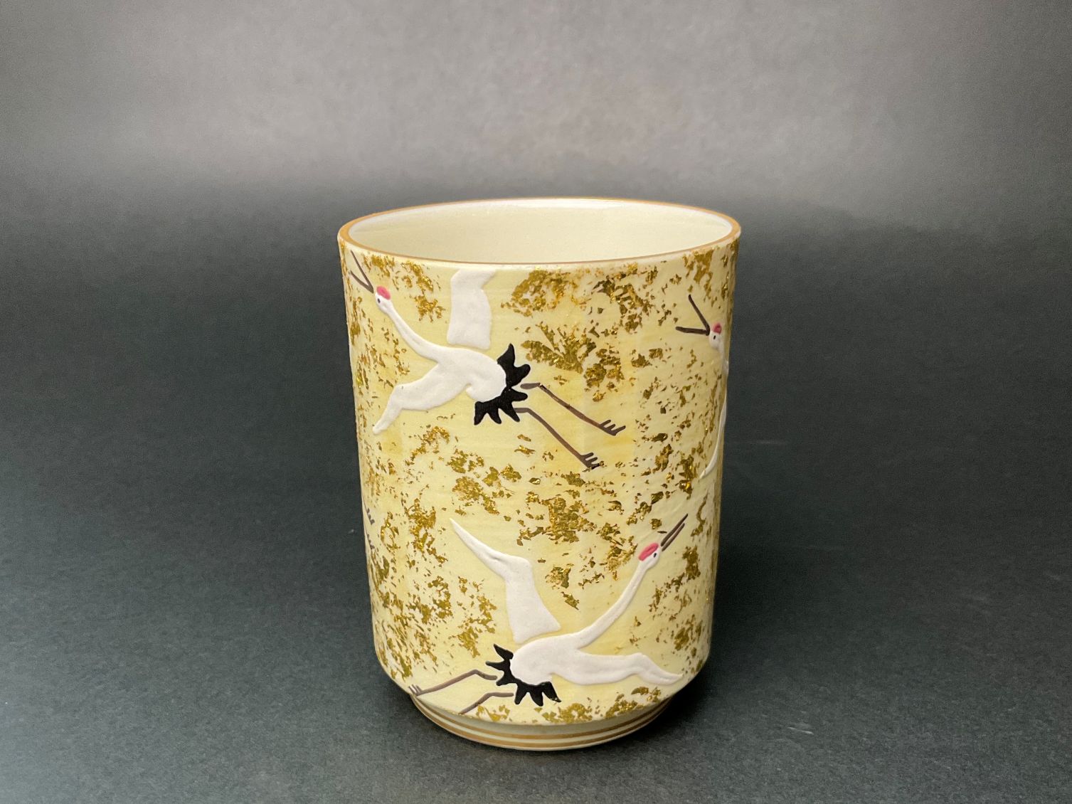 炭渓窯 色絵金彩群鶴湯呑(大)