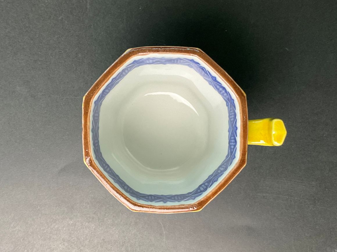 雲泉窯 黄南京窓枠草花八角マグカップ